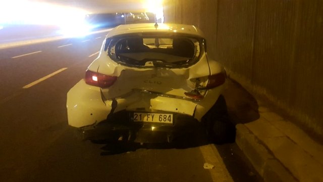 Olay, Diyarbakır-Şanlıurfa karayolu üzerinde bulunan Kantar kavşağı alt geçidinde meydana geldi. Edinilen bilgilere göre iddiaya göre alkollü olan 21 TT 0643 plakalı ticari taksi sürücüsü makas atarken, 07 AEP 180 plakalı araca çarparak takla attı. Ticari takside bulunan 4 kişi ağır yaralandı. Alkol şişeleri yola savruldu. Kazayı gören çevredeki vatandaşların haber vermesi üzerine olay yerine gelen çok sayıda 112 sağlık ekipleri yaralılara olay yerinde yaptığı ilk müdahalenin ardından hastaneye kaldırarak tedavi altına alırken, yanmak üzere olan aracı, Büyükşehir Belediyesi itfaiye ekipleri söndürdü. Öte yandan güvenlik güçleri kazayla ilgili geniş çapta inceleme başlatırken kazaya karışan araçlar çekici yardımıyla olay yerinden kaldırıldı.