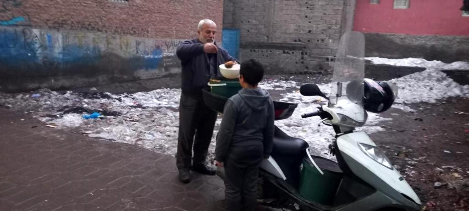 Bağlar Belediyesi'nde görevini yapan ve motoruyla ihtiyaç sahiplerine ulaşan Yılmaz Acu, Bağlar, Sur, Kayapınar ve Yenişehir ilçelerinde oturan ihtiyaç sahiplerini her gün ziyaret ederek onlara hem lokantalardan temin ettiği sıcak yemekleri hem de Bağlar Belediye Başkanı Hüseyin Beyoğlu'nun verdiği gıda kartlarını dağıtıyor.